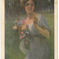 Колекция от илюстровани пощенски картички от началото на ХХ век до 40-те г. на ХХ век. Картичка: Художествена фотография на млада жена с цветеКолекция от илюстровани пощенски картички от началото на ХХ век до 40-те г. на ХХ век. Картичка: Художествена фотография на млада жена с цвете