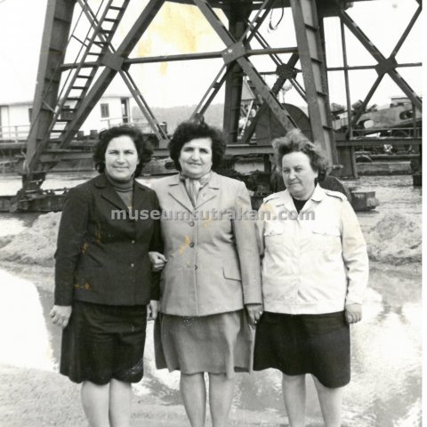 Фотография: Служителки на пристанището в Тутракан пред товарния кран. 1980 г.