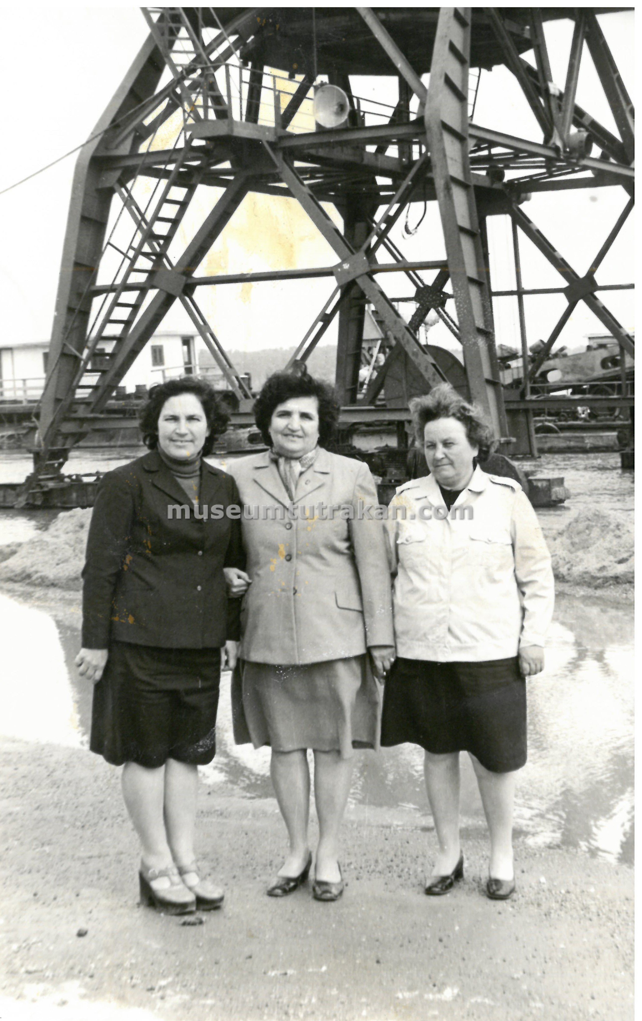 - Фотография: Служителки на пристанището в Тутракан пред товарния кран. 1980 г.